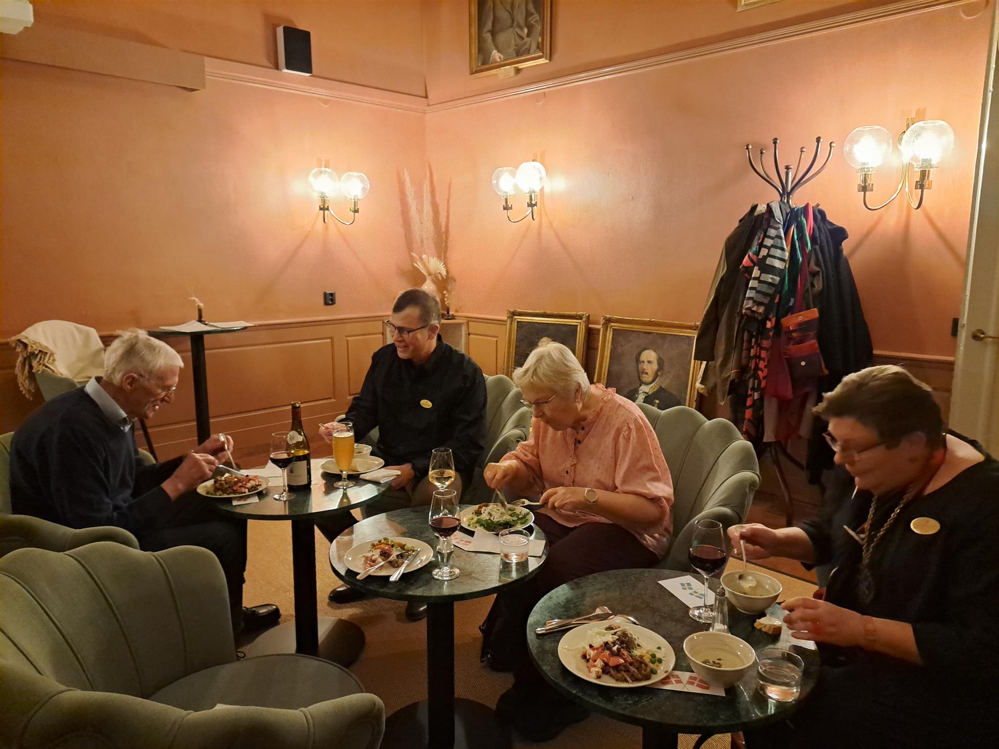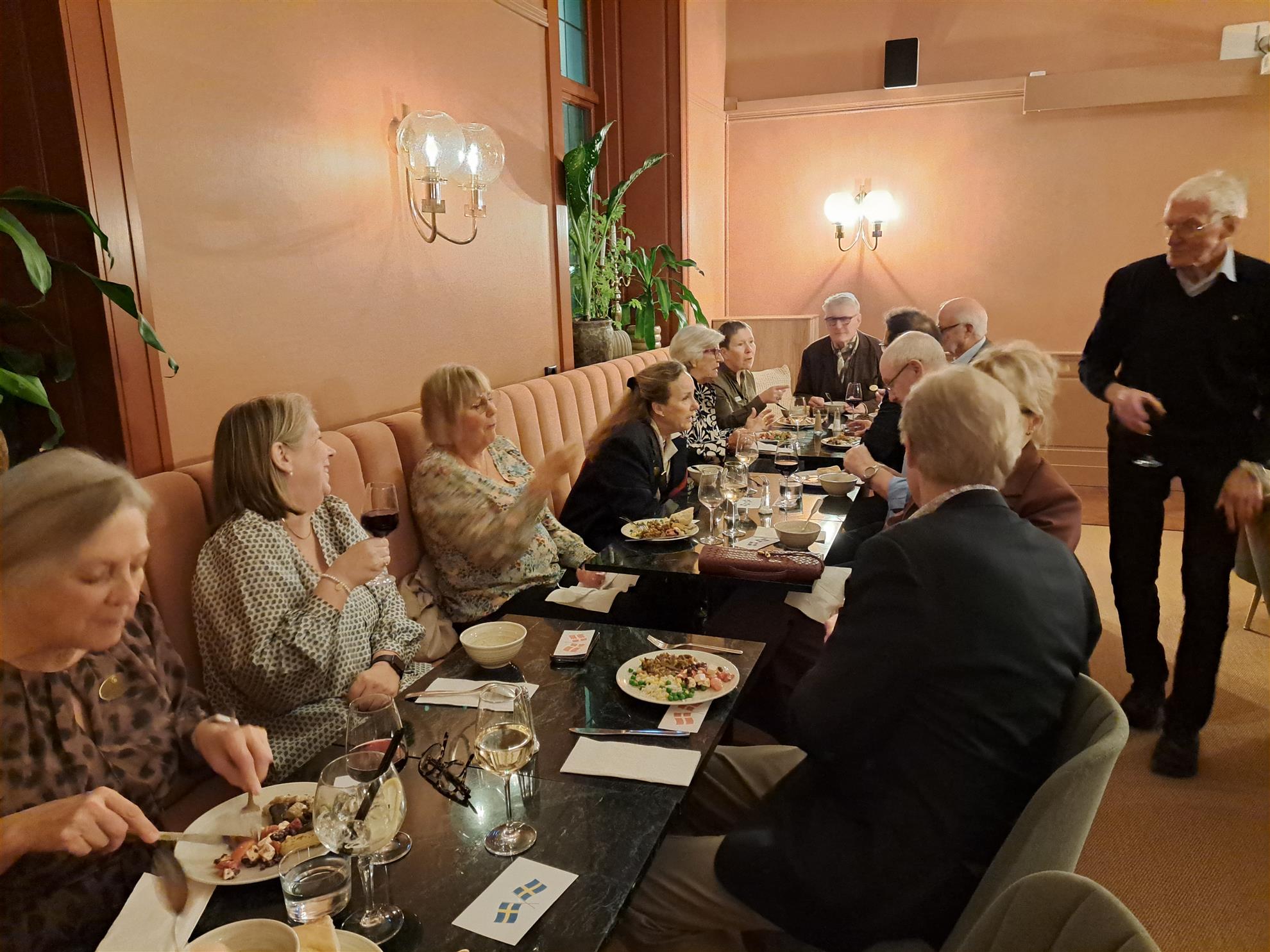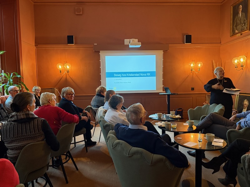 Torsdagen 6/11 anlände våra 12 danska gäster till Home hotell Christian IV, där de skulle bo. Vi träffades på hotellet och åt en kvällsbuffé i vår klubblokal under gemytliga former. Det är så roligt/ dejligt att träffa rotarianer från andra klubbar och länder. Vi hade en hyggelig kväll.